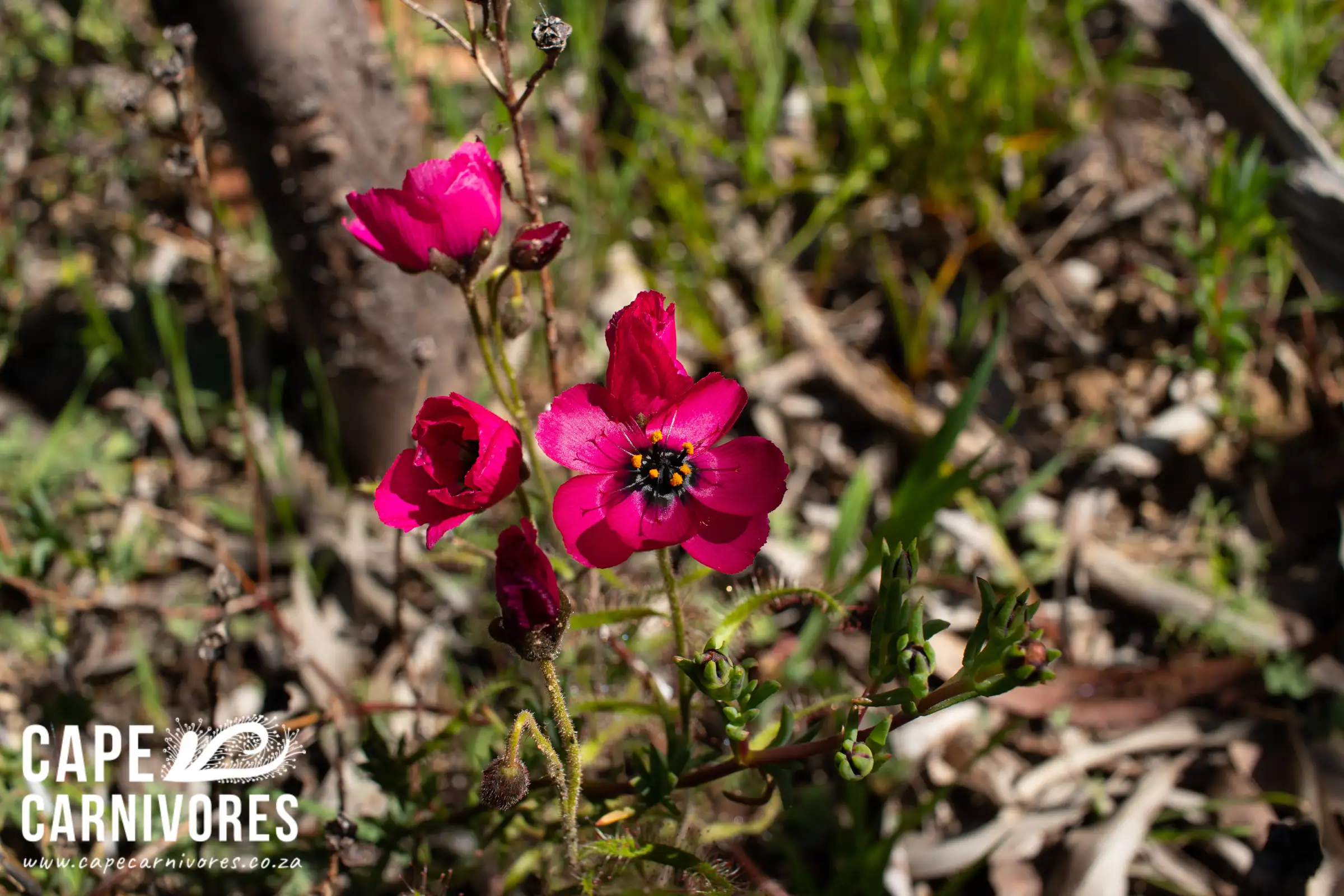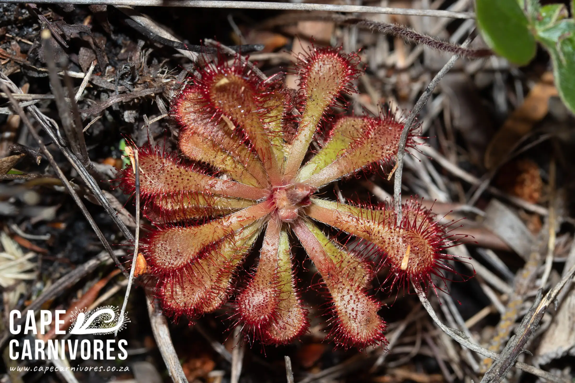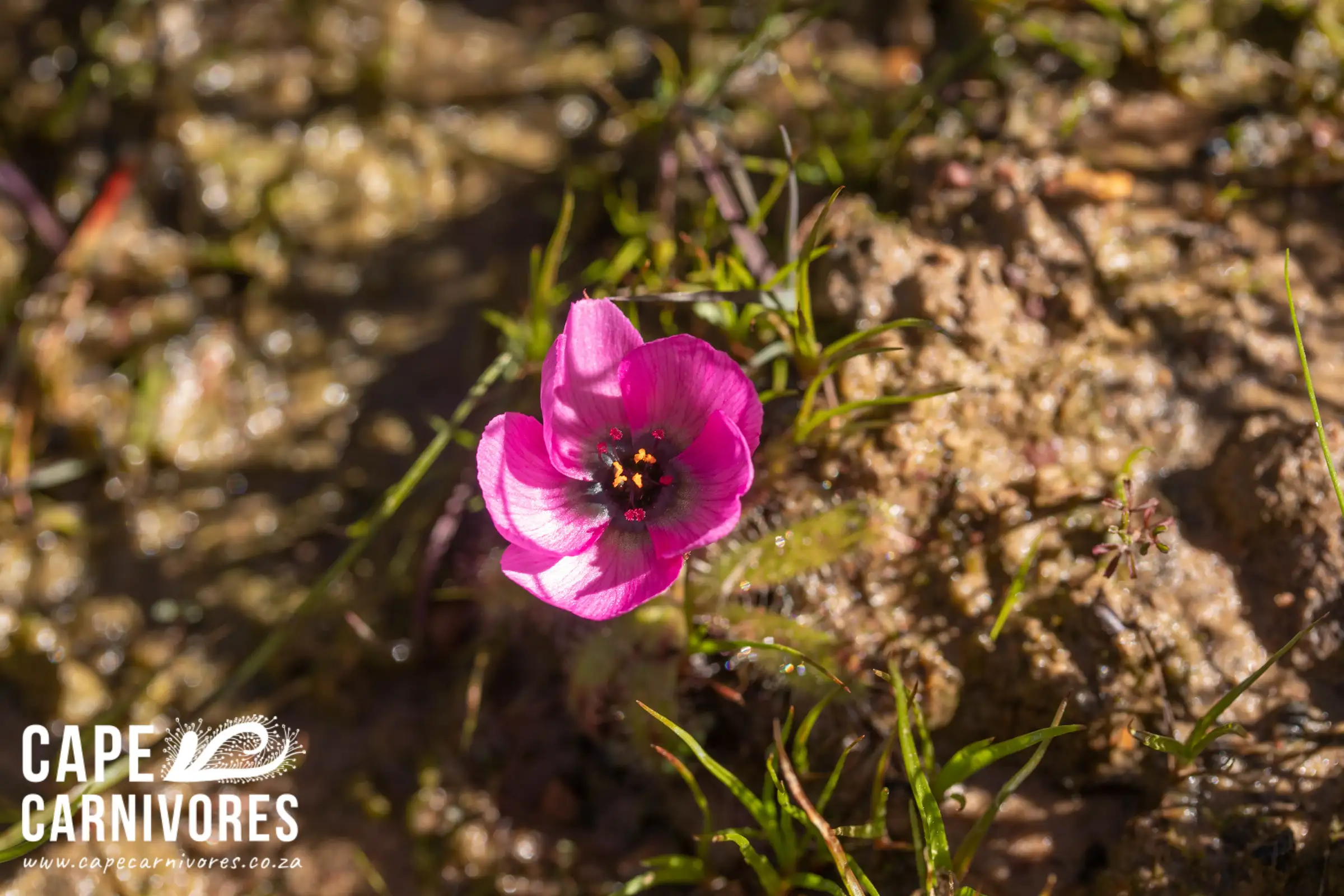 Cape Drosera hybridise somewhat regularly in the wild, producing numerous unusual and unique forms. They tend to occur between species growing nearby one another, unsurprising as many of the sundews have a similar pink flower. Winter grower hybrids also pop up, even across flower colour boundaries.
